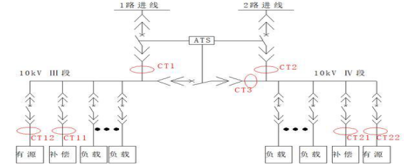 e)、兩段母線進(jìn)線工作方式不確定性:兩段母線有可能獨(dú)立工作、有可能并聯(lián)工作、有可能一段進(jìn)線帶兩段負(fù)荷。